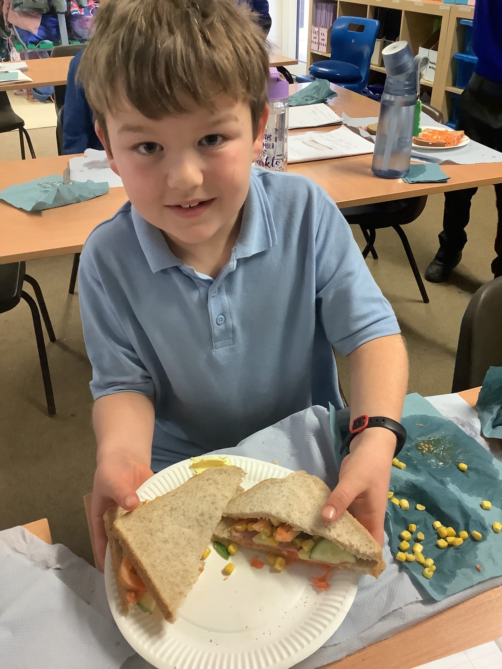 As part of our science work on healthy eating and our D&T work on food preparation, we researched, designed and made our own sandwiches.
