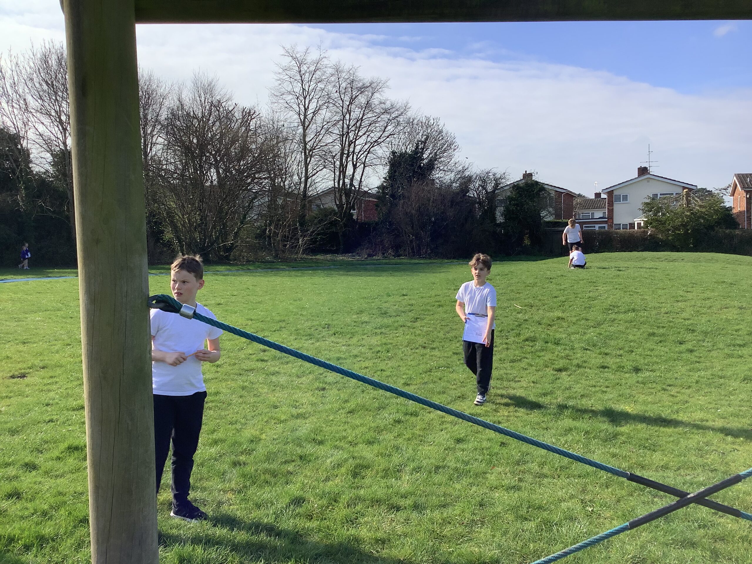 They looked at maps and measured out 10m with pacing. They were shown how to find little green and yellow flags by reading the map of our school. Next they set off searching for them.